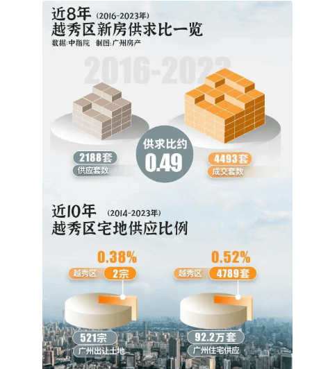 位于广州市越秀区环市东路,地处广府文化发源地的核心地带。过去10年,广州共出让521宗宅地,而越秀区仅占比0.3%,新房平均供求比仅有0.62,未来五年内严重供不应求。因此,『保隆越禧府』的入市显得尤为珍贵。