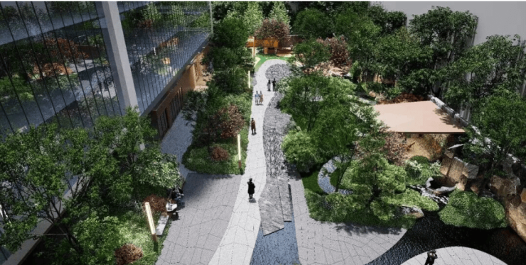 项目内部绿化面积约6000㎡,是越秀区在售项目中绿化最充裕的一个。设计师巧妙利用地形优势,创造出了层次丰富的园林景观,让住户尽享私属花园的宁静与美丽。