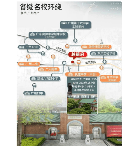 项目所属华乐街道,参考往年招生范围,就读于越秀区重点学校建设六马路小学,并且摇号对位10所中学,其中包括执信中学本部、育才中学、华侨外国语学校等6所省级名校,为子女教育提供坚实保障。
