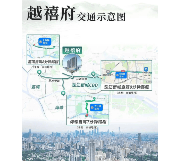 驾车出行同样便利,通过环市东路、东濠涌高架及东风东路,15分钟内可自由穿梭天河、海珠、荔湾等核心区域,享受城市繁华生活。