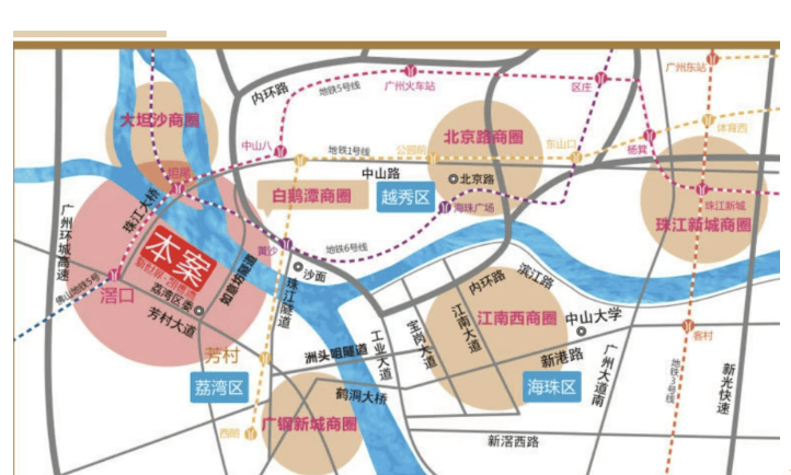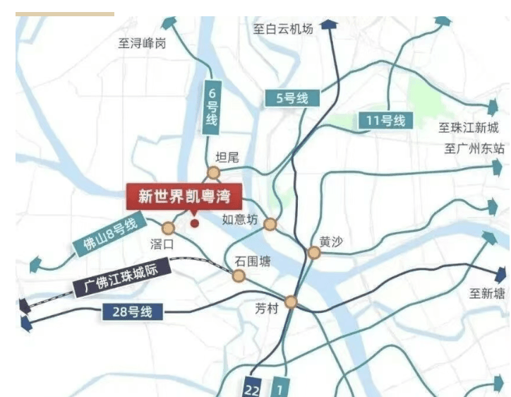 地铁:距5号线滘口站(首发站)仅400米,6号线、11号线(2024年通车)双轨交汇,白鹅潭TOD枢纽(规划中)直达珠江新城、琶洲。