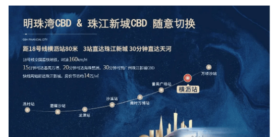 理由二:地铁口近在咫尺,交通便捷通达全城。距离地铁18号线横沥站仅约80米,1站直达万博CBD、2站琶洲、3站珠江新城,无需换乘,轻松实现广佛深珠一小时生活圈。