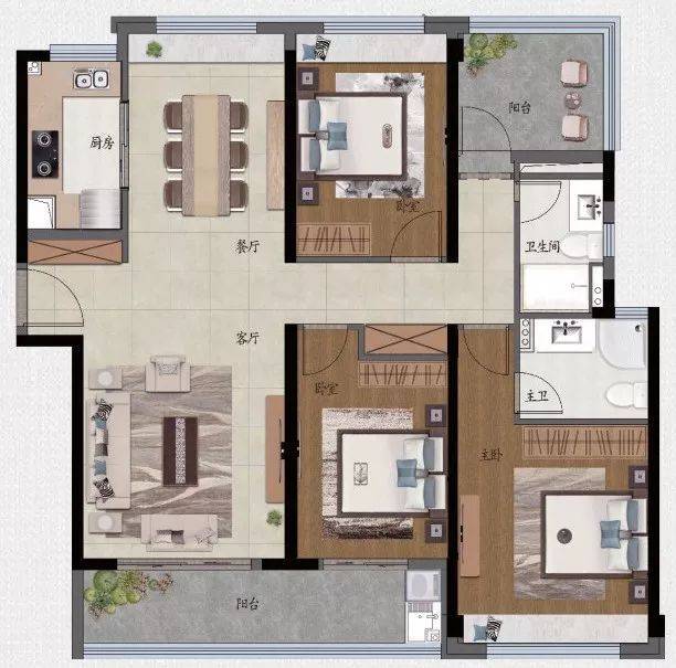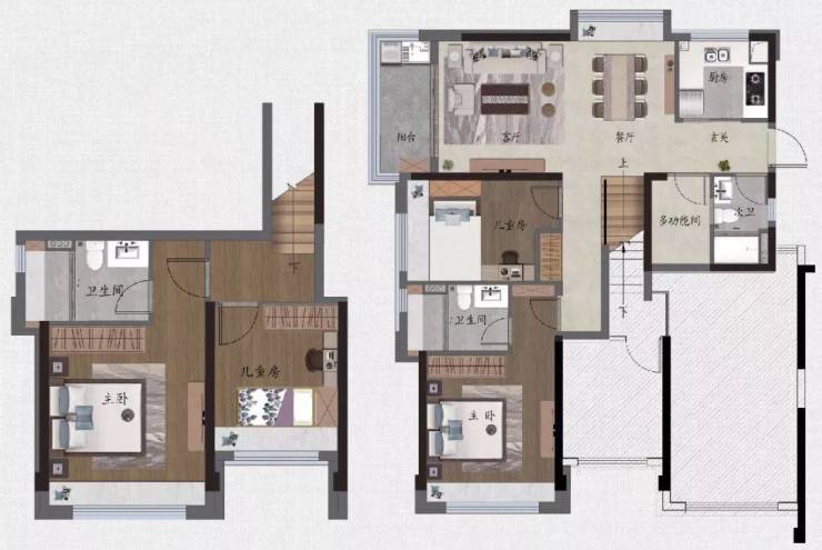 ①创新复式设计,4房3卫超高得房率