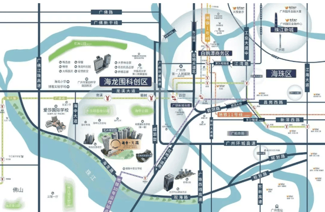 尽管销售强调项目位于海龙科创区,并将打造成广钢2.0版本,但实际位置距离白鹅潭核心区域较远,大约10公里。周边配套较为丰富,包括花地大道、环城高速等干线,方便自驾出行。然而,由于距离最近的地铁站超过步行范围,公共交通主要依赖于公交接驳。