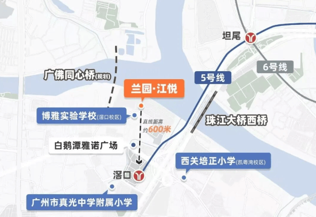 项目位置靠近5号线滘口站,距离地铁口约1公里,周边还有星河江缦及二手豪宅珠江鹅潭湾。旁边规划的广佛同心桥可直通佛山地区,白鹅潭大道未来也将通往广船和医药港等地,无论是地铁出行还是自驾出行都非常便捷。