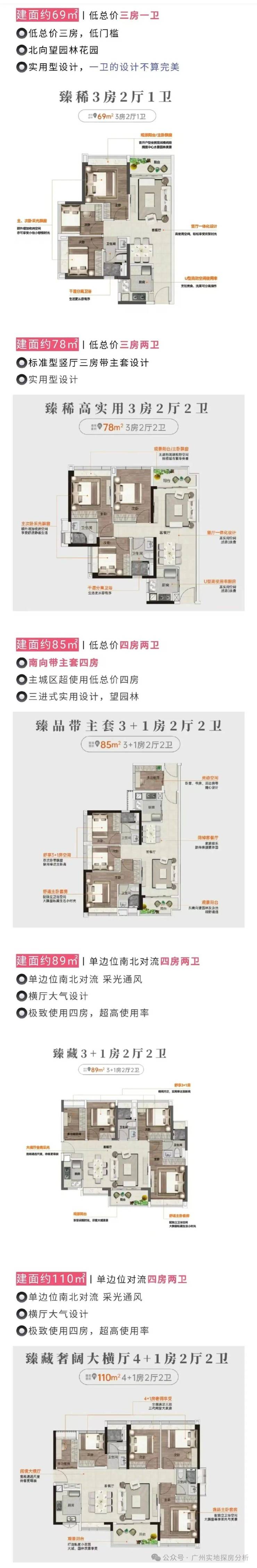 户型设计:78㎡三房一卫(总价约280万)、89㎡三房两卫(总价约320万)、110㎡四房两卫(总价约400万),满足刚需至改善需求。