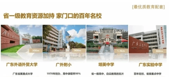 教育配套方面,项目自建了多所学校,包括一所九年一贯制学校、一所完全中学及三所幼儿园。目前九年一贯制学校小学部已落成,与A组团仅一路之隔;中学部也已全面封顶。周边还有黄边小学和广州市培英中学云城校区等优质教育资源可供选择。