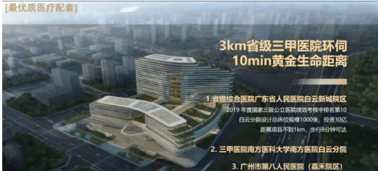 项目3公里范围内有多家三甲医院,包括广东省人民医院白云新城院区、南方医科大学南方医院等,能够为居民提供优质便捷的医疗服务。