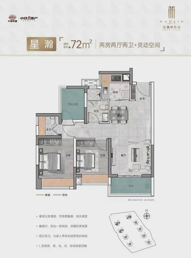 针对追求高品质生活的家庭,中国铁建·翰林新语推出了72至95平方米的三至四房南向户型。所有户型均采用南北通透设计,确保室内空气流通良好,阳光充足。特别是对于小户型来说,设计师巧妙地增加了使用面积,使得即使是较小的空间也能拥有更多的功能分区,例如额外的卫生间或储物间,提升了居住舒适度和实用性。