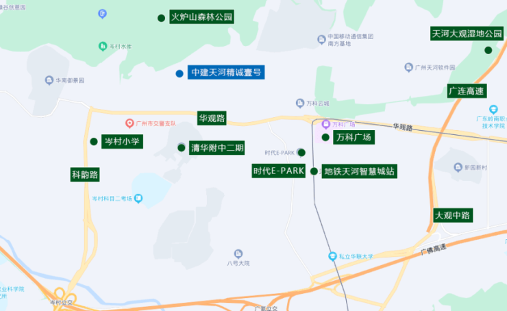 在教育配套方面,中建天河精诚壹号也展现出了强大的实力。与项目一路之隔的清华附中湾区学校二期已正式动工,预计二零二五年六月交付。该校规划了一百零八公办学位,涵盖小学至高中全学段,将为项目业主子女提供优质的教育资源。虽然根据天河区招生政策,小学实行三公里范围内摇号,初中为全区摇号,存在一定的不确定性,但清华附中湾区学校的入驻无疑为片区教育水平注入了强劲动力。加之周边现有的凌塘小学、岑村小学等公立学校,整个片区的教育资源正处于逐步完善和升级的阶段,为孩子们的成长提供了良好的环境。