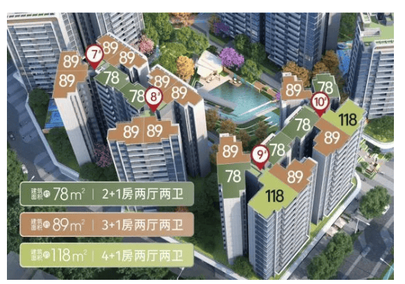 户型设计:78-118㎡高赠户型,刚需与改善兼顾