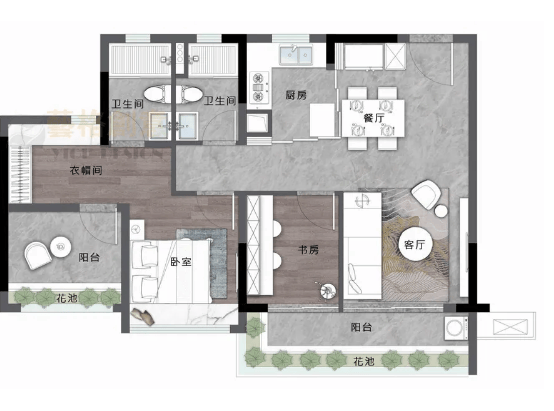 78㎡2+1 房两厅两卫:刚需入门户型,四开间采光全明通透,LDKG 一体化客餐厨设计,客厅与次卧可灵活组合,5.5 米双面宽阳台拓展空间,独立主套(开间 3.8 米),满足单身或新婚家庭需求;