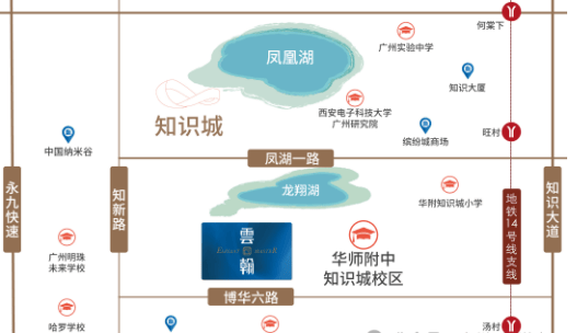 广开云翰地处知识城南起步区的核心地带,该区域是粤港澳大湾区唯一的中国-新加坡国家级合作项目的一部分,被誉为“湾顶明珠”。区域内聚集了大量的高新技术企业和科研机构,形成了强大的产业集群效应。此外,广开云翰距离华附知识城校区仅直线距离100米,周边教育资源丰富,为孩子的成长提供了优质的教育环境。