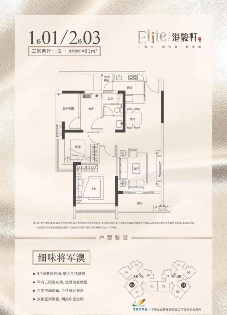港骏轩项目引进了碧桂园物业服务,300万+业主的一致认同碧桂园的服务观——“给您一个五星级的家”,其秉持“急业主所急,想业主所想”、“一切以业主为中心”的服务理念,以“管家式”服务为标准,包含了三大内涵:一个中心 —— 一切以让客户高兴为中心;两种感觉——像朋友、亲人的感觉;三种服务——跑步服务、微笑服务、马上服务。“每一项服务,我们都要不断训练,进而熟练掌握。”