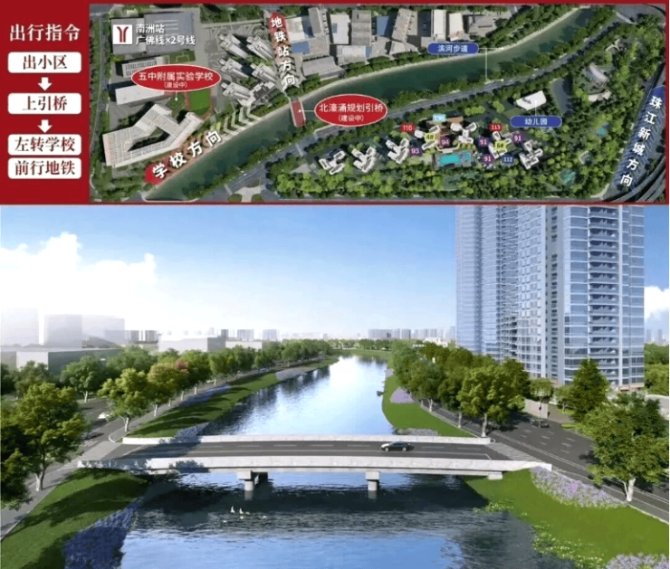 交通的便捷性直接决定生活幸福感,中交天翠凭借优越的地理位置,构建起“地铁+主干道+公交”的三维立体交通网络,轻松通达广州各核心区域。根据项目官方实测数据,项目直线距离地铁2号线与广佛线交汇处的南洲站仅约500米,目前虽隔水道,但根据海珠区政府发布的《南洲板块基础设施升级规划(2024-2026)》,未来将规划建设步行桥连接项目与地铁站,建成后步行5-8分钟即可抵达站台,实现真正的“地铁盘”生活。