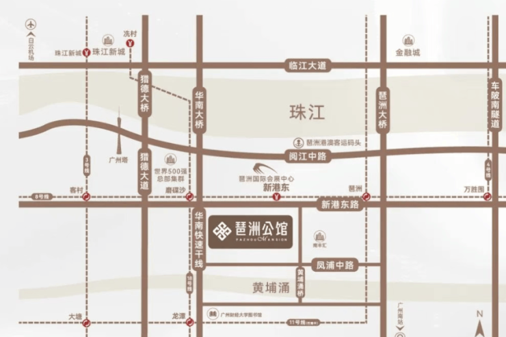 广州城投·琶洲公馆位于广州琶洲中区核心地段,具体地址为[详细地址]。该地段左拥珠江新城,右揽金融城,交通便捷,周边配套设施完善,是投资和居住的理想之地。