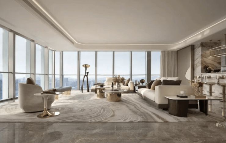 项目采用高级精装修交付标准,邀请国际知名室内设计团队进行设计。装修材料选用一线品牌,如地板、墙面、天花板等采用高品质材料,具有良好的质量和性能。同时,项目还配备了大品牌的家电,如冰箱、洗衣机、空调等,为业主提供便捷、舒适的生活体验。