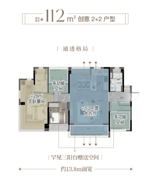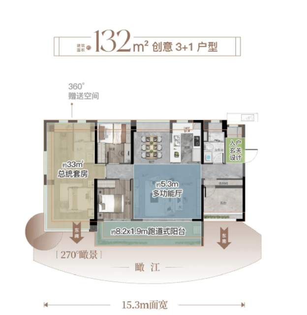 空间尺度:约3.8米的奢阔横厅,配合LDK一体化设计,打破了传统小户型的空间局限,营造出开阔大气的公共活动区域。