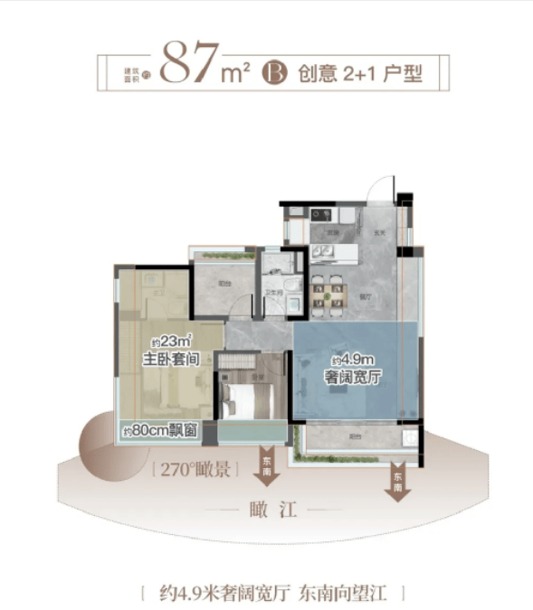 销量冠军:作为全盘“断货王”户型,87B户型深受市场追捧,是其销量TOP1的有力证明。