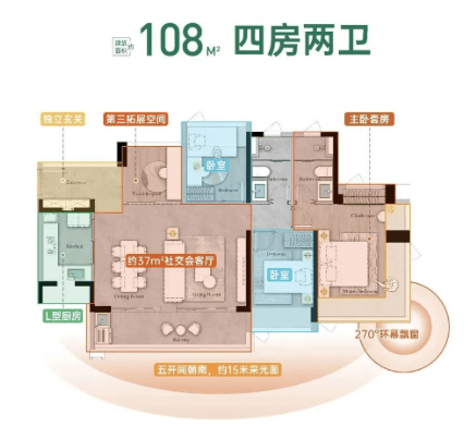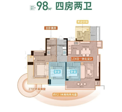 所有户型设计均使用率接近100%,确保了居住空间的最大化利用。其中,部分户型如98平方米四房两卫和108平方米四房两卫,更是采用了最新的建筑新规设计,使得居住体验更为舒适。