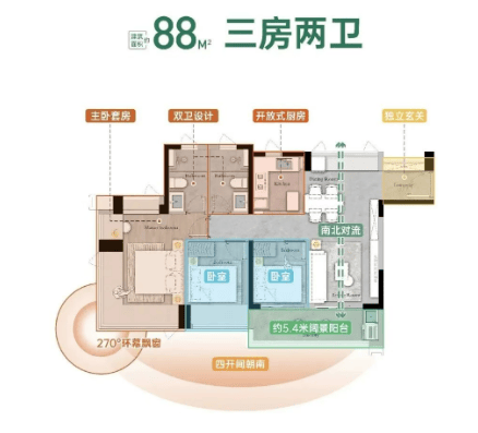 在售产品:约88-108平方米三四房