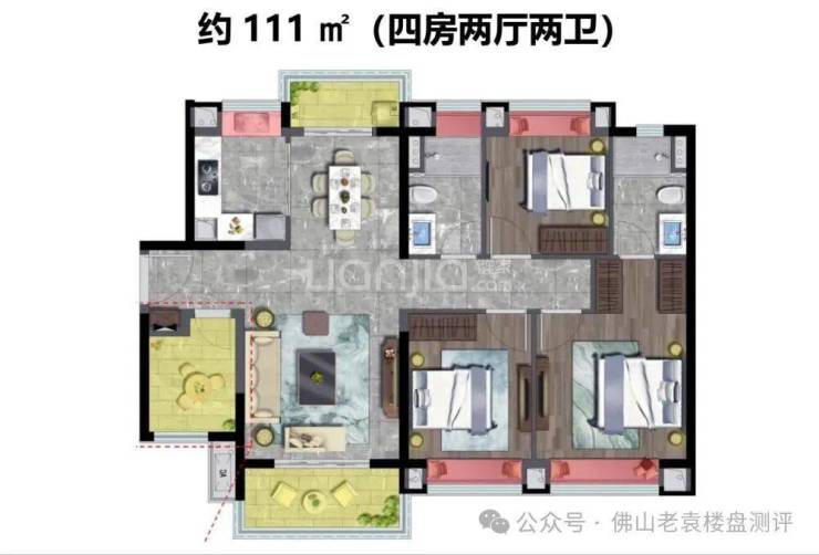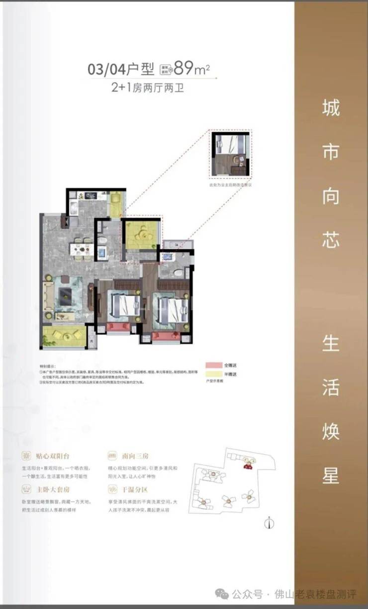 主力户型:提供89㎡2+1房、111㎡3+1房等多种户型,覆盖刚需至刚改需求,满足不同家庭结构。