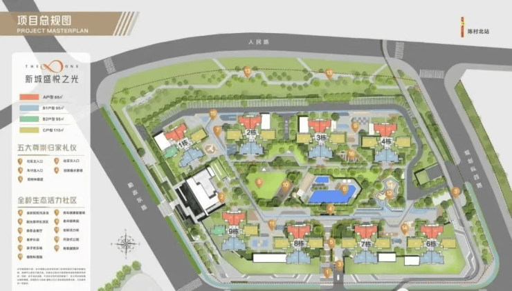 新城盛悦之光总占地面积约39,695㎡,总建筑面积达163,695㎡,规划8栋高层住宅及沿街商业,容积率3.0,绿化率高达35%,营造疏朗宜居的社区环境。项目由国家一级资质物业——新城悦物业提供服务,物业费仅为2.7元/㎡/月,兼顾品质与成本效益。全盘共计1188套住宅,产品聚焦主流刚需及首改需求,兼顾私密性与功能性,奠定高品质生活基底。