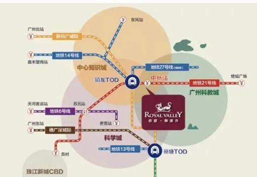 项目处于中新知识城南部核心区域,拥有双地铁三轨道交汇优势,包括地铁21号线、地铁14号线支线以及新白广城际,形成多线换乘与区域互联能力。社区临近地铁站,居民可便捷接驳城际及城市轨道,4站可达天河大观南路站,1站可至镇龙站,实现核心板块的快速互通。