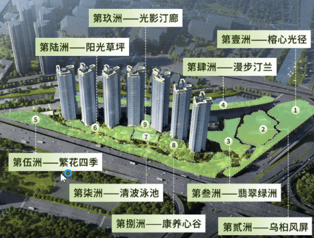 休闲娱乐:项目提出“公园九洲”理念,营造生态居住氛围,拥有约7.2万㎡景观配套,涵盖九大节点及七大运动主题花园。