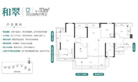 113平方米四房两厅两卫:宽敞舒适,适合改善型需求。