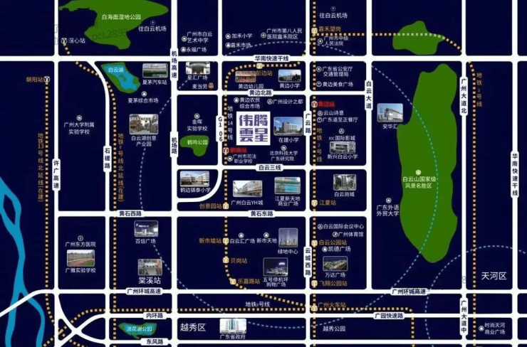 伟腾云星的区位价值,核心在于“交通枢纽+城市核心板块”的双重加持,地处广州白云区鹤龙一路,紧邻白云新城,坐享广州设计之都发展红利,同时凭借多维交通网络,实现高效通达全城的便捷生活。