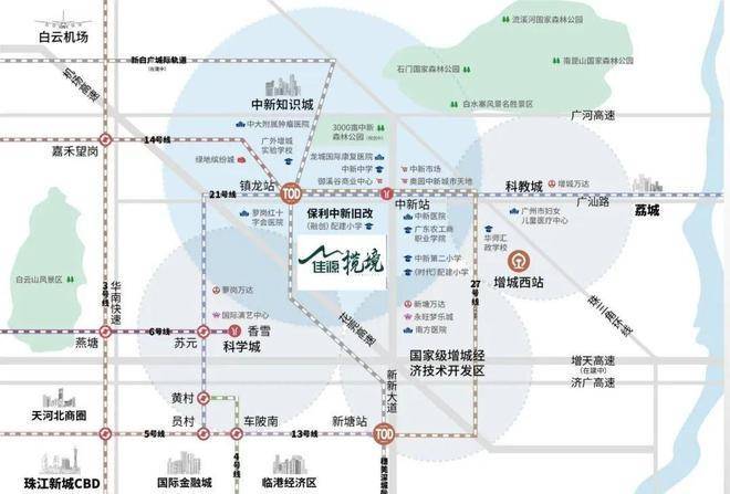 【项目区位图】本案雄踞科学城、知识城、科教城三城交汇,共享“三城一区”政策资源利好,拥揽60万人口,享千亿产业红利,产业价值高地,置业价格洼地