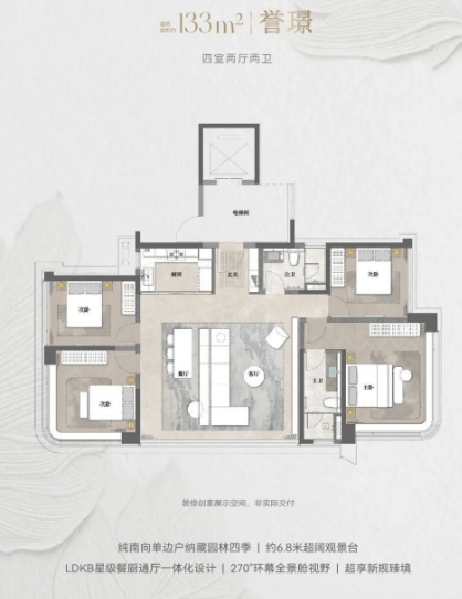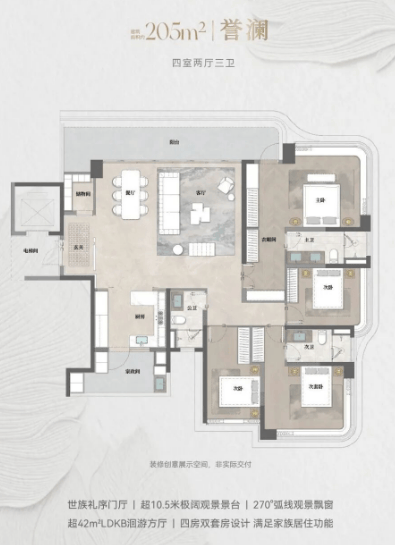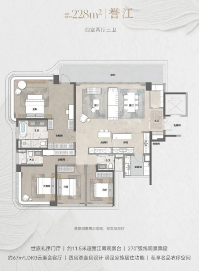 天誉府提供多种户型选择,包括约133平方米四室两厅两卫的【誉璟】、约205平方米四室两厅三卫的【誉澜】以及约228平方米四室两厅三卫的【誉江】。每种户型都注重空间的合理布局与利用,为居民带来舒适的居住体验。