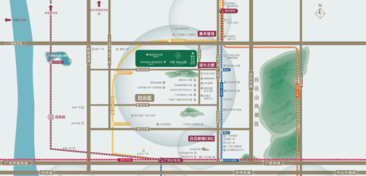 项目坐落于设计之都的核心地带,距离地铁2号线黄边站仅几百米,步行即可到达。此外,在建中的14号线二期也将设有站点,进一步提升了项目的交通便利性。驾车出行方面,临近空港大道,便捷通达白云新城及其他重要区域。