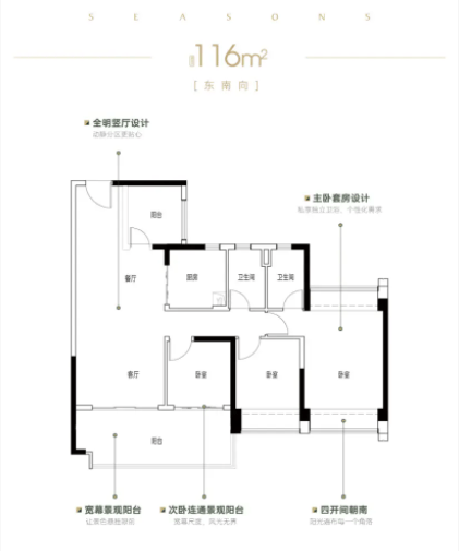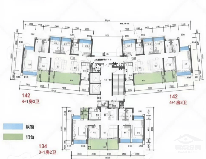 115-116㎡四房: 二胎家庭及三代同堂首选,部分黄金楼层已售出。