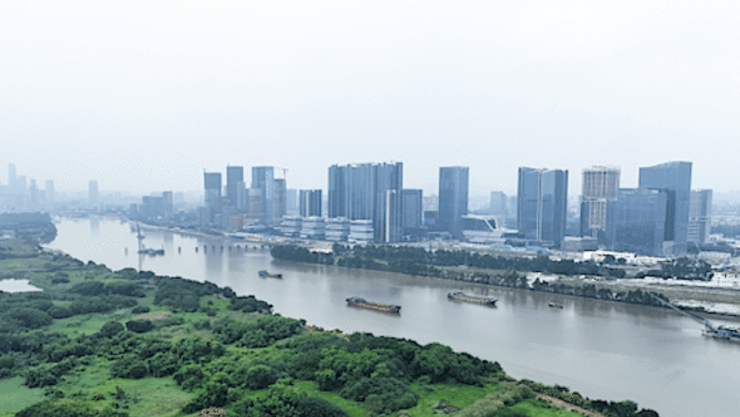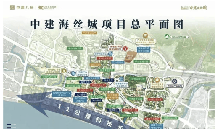 中建海丝城位于海丝城板块核心区域,毗邻临港经济片区,是广州市沿江东进战略的重要节点。该区域吸引了大量科创、总部经济、人工智能及数字经济企业入驻,为片区提供了充足的产业支撑和优质人才聚集。项目所在位置也是“三城一岛”战略中的关键区域,是黄埔新兴产业和未来经济引擎的核心承载地。其南向一线江景资源在老黄埔十分稀缺,背靠龙头山森林公园形成山水相依的生态格局,加上“5+9+7”公园城市规划,实现出门即入园的优质生活环境。区位优势与生态资源结合,赋予项目长期增值潜力,使其在未来城市发展布局中占据不可替代的战略性地位。
