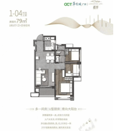 华侨城湖岸深研增城家庭居住需求,打造79–110㎡二至四房产品,兼顾首置与改善客群。主力89㎡三房采用蝶形布局,有效扩大观景视野与采光面,配合约70米超宽楼间距及6米架空层设计,营造通透舒展的居住体验。全系户型强调实用性与空间效率,得房率优于市场平均水平。需注意的是,79㎡小户型卫生间未设直接对外窗,通风依赖阳台;110㎡三房次卧面积相对紧凑,建议购房者实地感受空间尺度后再做决策。
