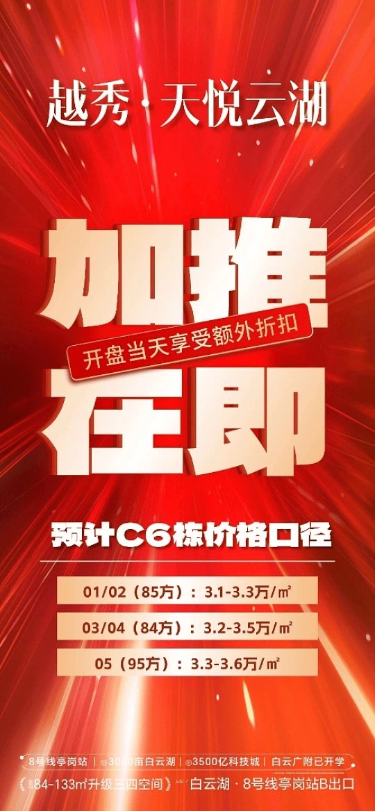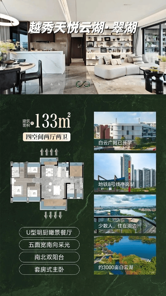 在广州中心区的刚需楼盘里,越秀・天悦云湖是为数不多的,能同时满足 “地铁、名校、湖景、国企安全” 四大核心需求的项目,这也是项目能持续热销,成为白云湖板块红盘的核心原因。