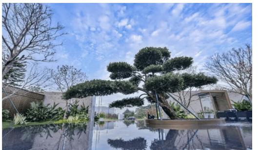 坐拥一线高尔夫无遮挡景观,搭配原创宋式园林,内外双生态格局,绿化充足,观景与居住体验优异。