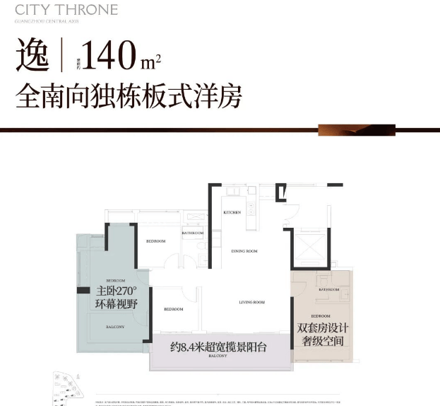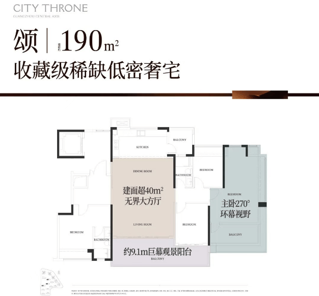 特别值得一提的是T5栋,独栋板楼设计,每套均为约240平的大平层,专梯专户,货量稀少。另一亮点是T7栋央景楼王,主打约140平户型,景观极佳,望浮岛森谷和白云山,货量仅32套。