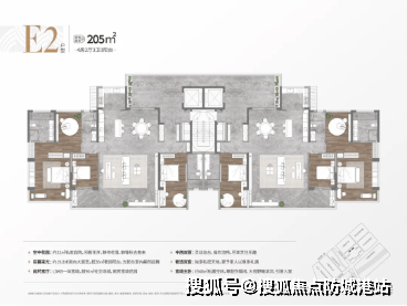 建面约205㎡四房:配备32㎡庭院+19.8米南向大面宽,主卧含独立衣帽间与观景浴缸,适合改善型家庭。