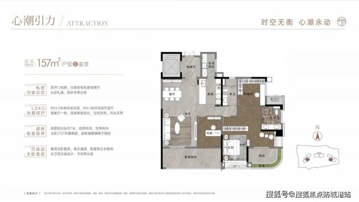 🏡 两梯三户(专梯专户),使用率 100%,四开间朝南,独立入户电梯厅 + 270° 弧形飘窗,主卧套间配独立卫浴 + 步入式衣帽间,适合年轻高净值家庭。剩余 28 席,降价后单价 9.2 万 /㎡起,总价 1444 万起,较周边二手同面积段豪宅(如天荟公馆 10 万 /㎡)省 125 万 / 套。