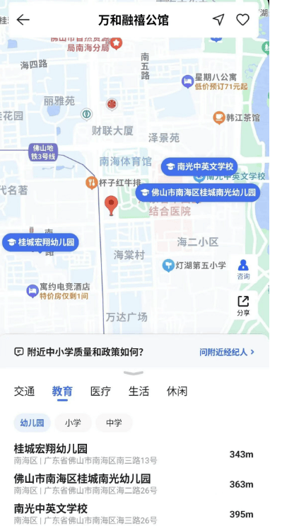 此外,桂城的文化氛围浓厚,拥有众多历史遗迹和文化场馆,如祖庙、南风古灶、岭南天地等,为居民提供了丰富的精神文化生活。教育、医疗等公共资源的优质配置,更是吸引了大量高素质人才在此定居。万和融禧公馆周边分布有灯湖六小、桂江二中等多所名校,以及广东省中西医结合医院等三甲医院,满足了全龄段人群的生活需求。