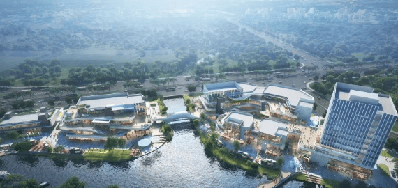 项目步行10分钟内即可到达海珠万达广场和合生广场等超20万方商业集群。项目自带约4万方滨水商业,设计灵感来源于新加坡vivo city,采用开放式布局,增加了外摆和互动空间,营造出自在气息和时尚烟火气。