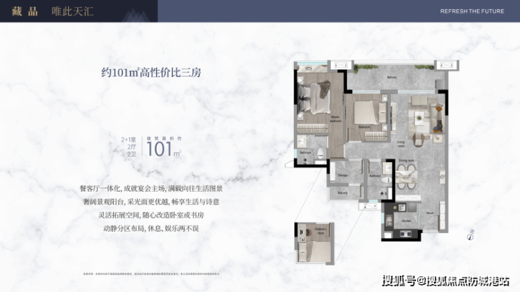 99㎡三房:总价495万起,南向三开间设计,主卧套房带独立卫浴