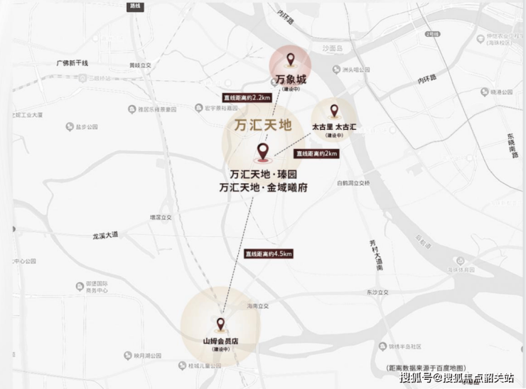 自驾优势:通过“三横三纵”路网(如鹤洞大桥、珠江隧道),10分钟直达广钢新城,20分钟覆盖越秀、海珠核心区。