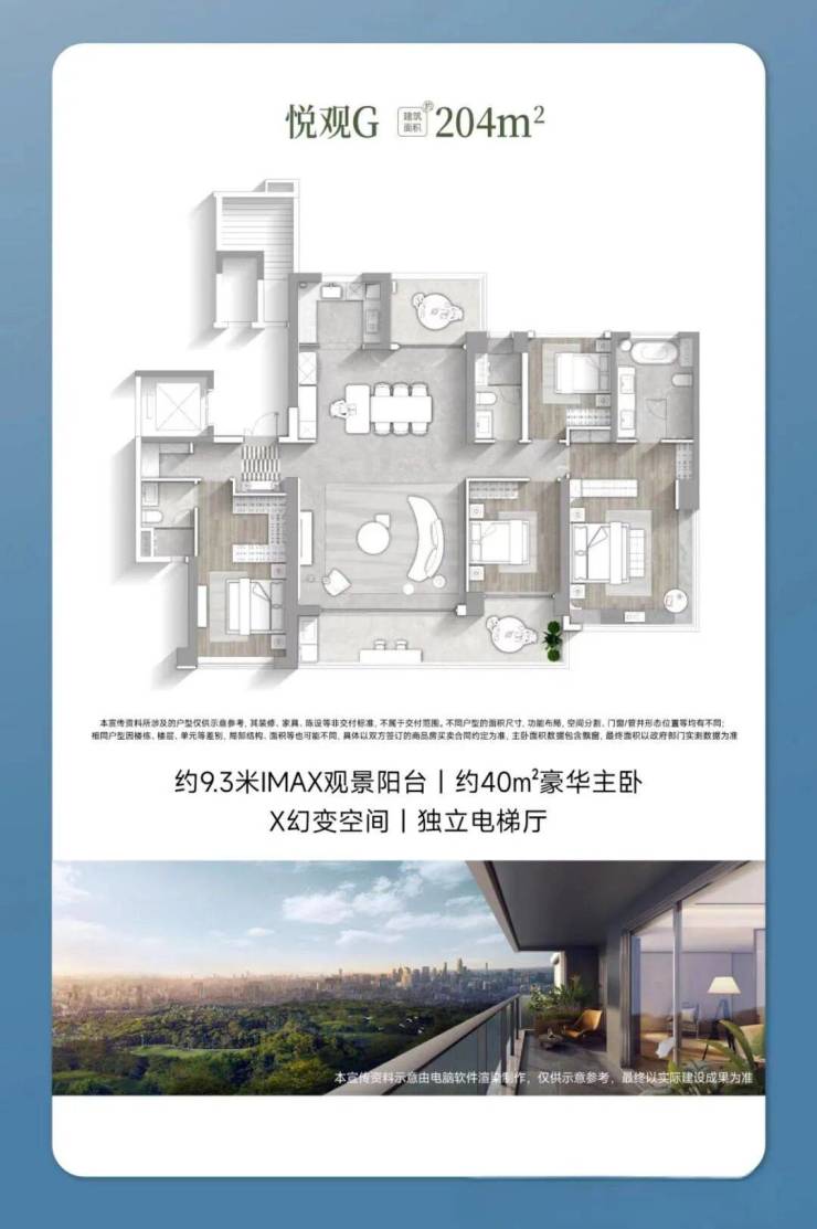 如果说前两款户型是改善的典范,那么204㎡的板楼户型则是长隆万博悦府献给塔尖人群的终极礼物。这款户型拥有罕见的270°景观视野,可以俯瞰长隆度假区的葱郁绿意和万博CBD的璀璨夜景,视野之开阔,令人心旷神怡。