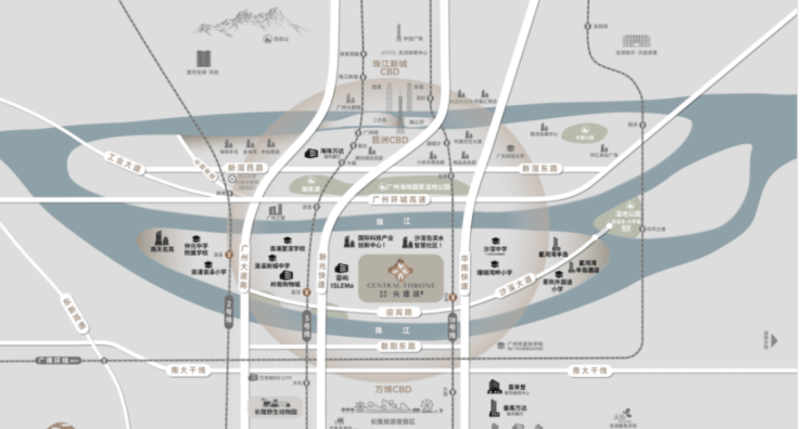 交通是本案的王炸优势。距离地铁18号线沙溪站仅约600米,步行即可到达。18号线作为时速160公里的“地表最快地铁”,1站到万博,2站到琶洲,3站直达珠江新城冼村站。这意味着,从央璟颂出门,不到15分钟即可到达珠江新城上班,彻底打破了物理距离对通勤的限制。此外,3号线厦滘站也在辐射范围内,双地铁加持,通勤无忧。