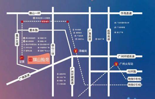 深业旗山雅苑藏在佛山南海里水这片广佛交界的热土上,位置正好卡在里水大道南侧,下亨村出口附近,属于泛金沙洲展旗山板块的核心地带。这里离广州金沙洲仅一步之遥,住在这里的人日常通勤两城之间特别方便。