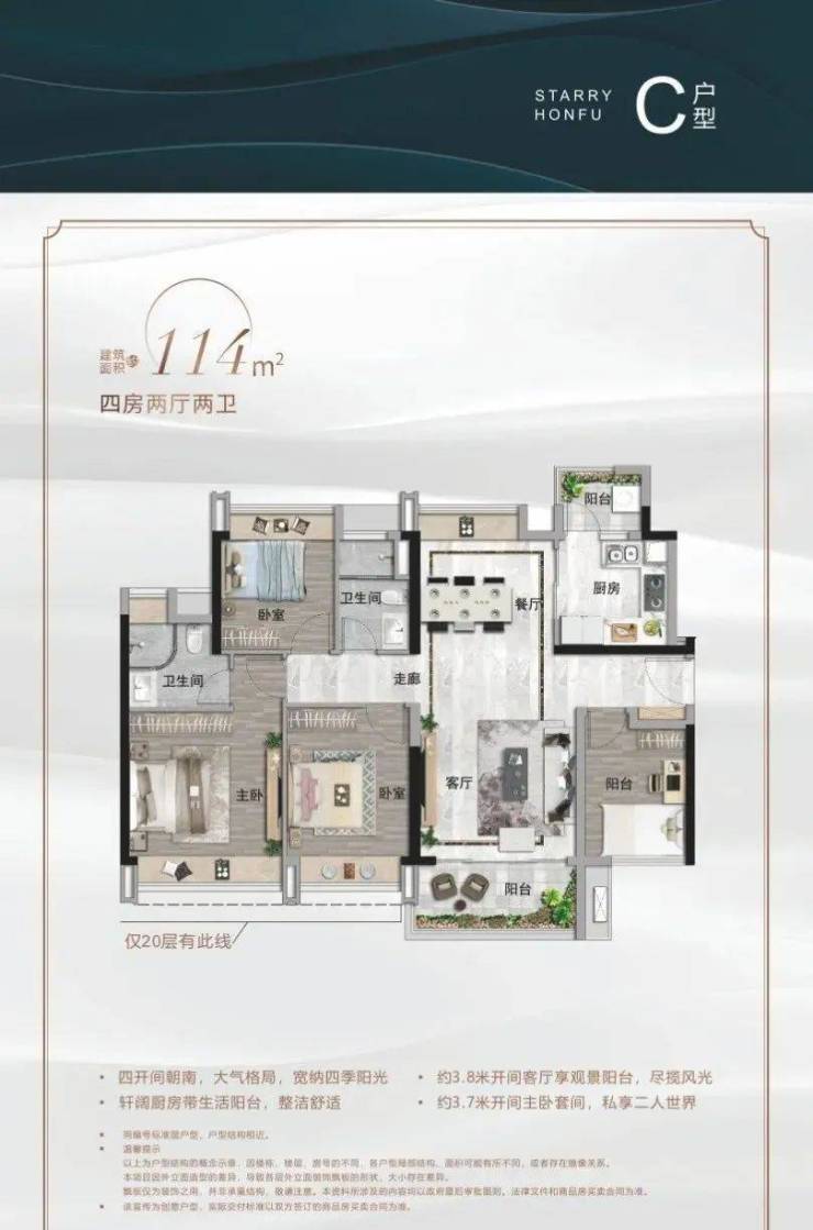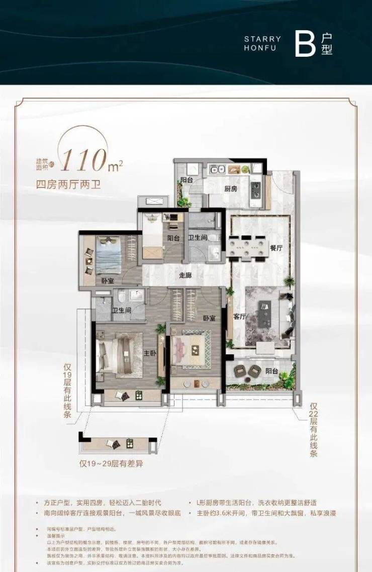 性价比超高的四房户型,适合二胎或三胎家庭,双阳台设计让美景尽收眼底。